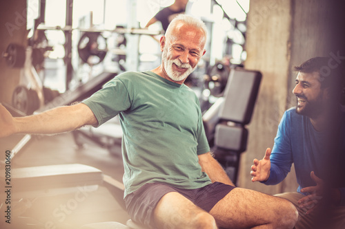 © Mladen, Obraz premium Happy and healthy senior at gym.