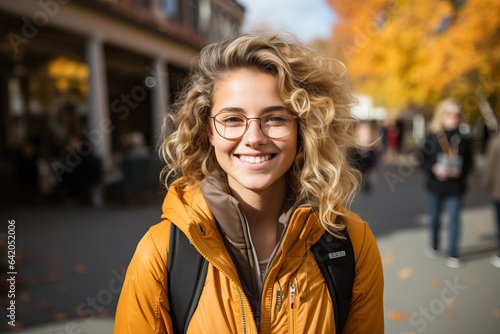 © Ezio Gutzemberg, Fototapeta premium Happy and Stylish: Satisfied Woman Wearing Trendy Glasses Outdoors