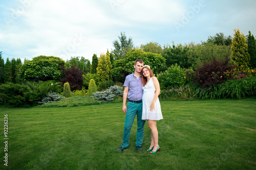 Fototapeta premium Happy and young pregnant couple in nature