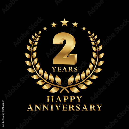 © IQ art_Design, Fototapeta premium Happy Anniversary Logo 1, 2, 3, 4, 5, 6, 7, 8, 9 Years with Laurel Wreath Golden Star. Vector Illustration.