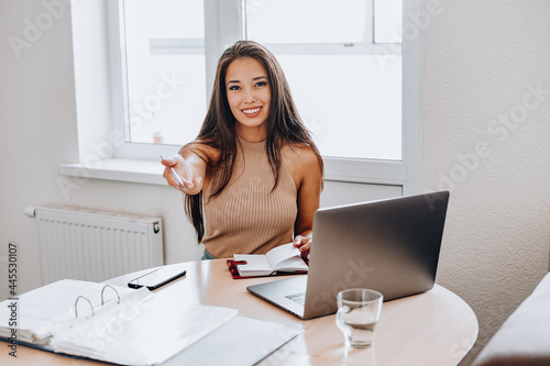 © Alina, Obraz premium happy asian business woman in the office. business woman conducts an interview