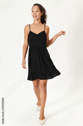 © Rawpixel.com, Naklejka premium Happy asian woman in a black dress mockup