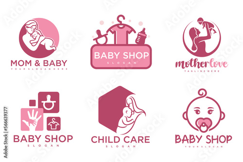 Fototapeta premium happy baby and mother icon set logo design.badges for children store & baby care center.illustration