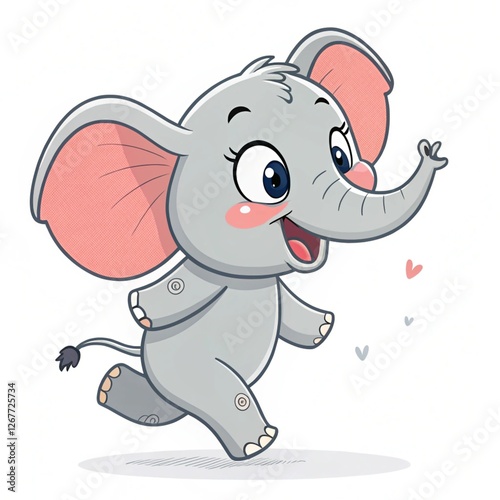 © LIA, Fototapeta premium Happy baby elephant running, white background, hearts, children's illustration