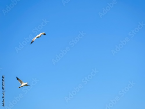 Obraz premium Happy birds flying under a clear blue sky, happy bird, flying bird, clear...