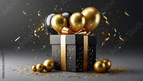 © MUHAMMAD, Naklejka premium Happy Birthday Banner and Greeting Card. Luxury and Premium Birthday Celebration Cover and Background with Gift Box, Confetti, and Golden Text Vector Illustration