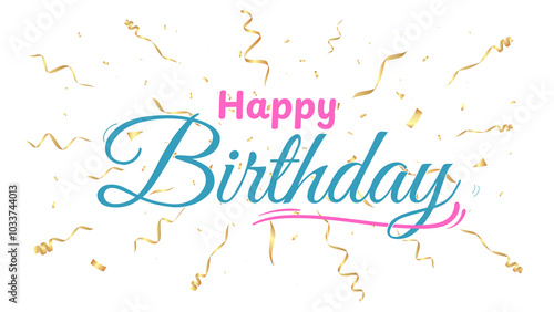 Obraz premium Happy birthday calligraphy hand lettering with gold confeti
