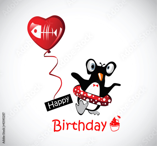 © novkota1, Obraz premium Happy Birthday Card funny penguins