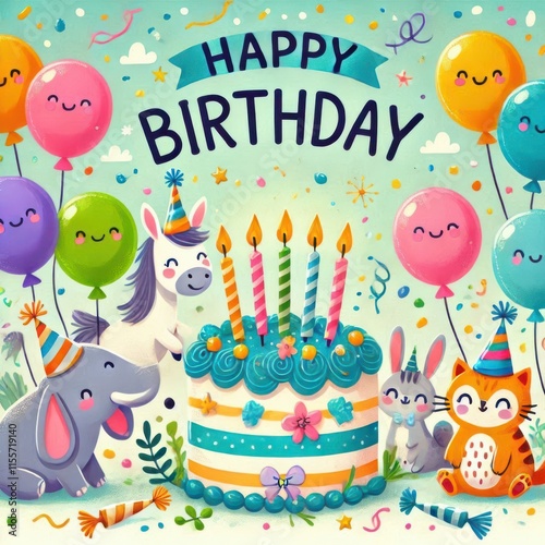 Fototapeta premium happy birthday card with balloons content created with generative AI software.