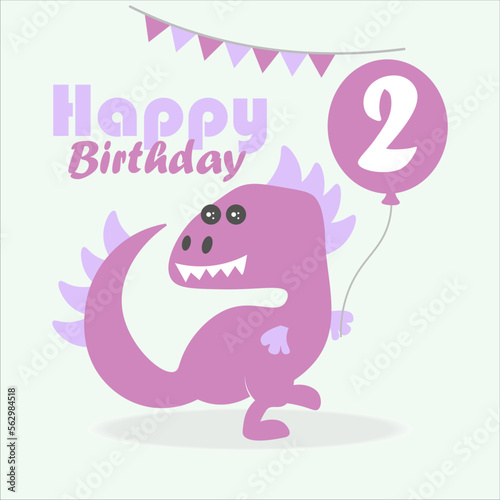 Fototapeta premium happy birthday card with dinosaur icon, vector, illustration