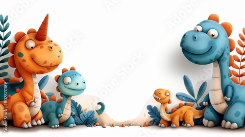 © Atchariya63, Naklejka premium happy birthday card with watercolor dinosaurs, boho theme,
