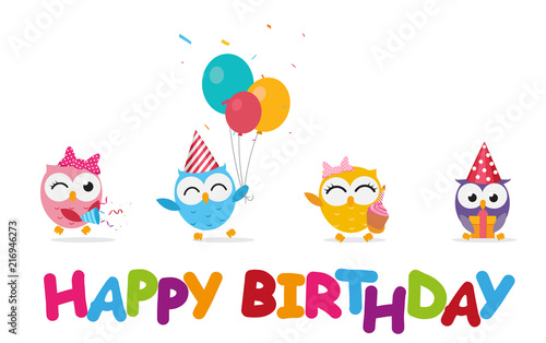 Fototapeta premium Happy birthday celebration with cute owl
