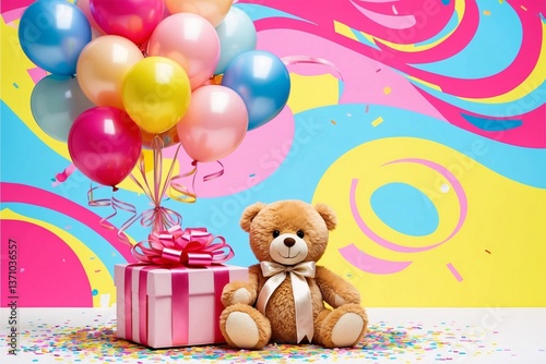© Sergio, Obraz premium Happy birthday cute toys playful background