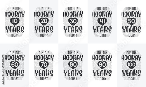 Fototapeta premium Happy Birthday design set. Best Birthday Typography quote design bundle. Hip Hip Hooray 10, 18, 20, 30, 40, 50, 60, 70, 80, 90, 100 years today