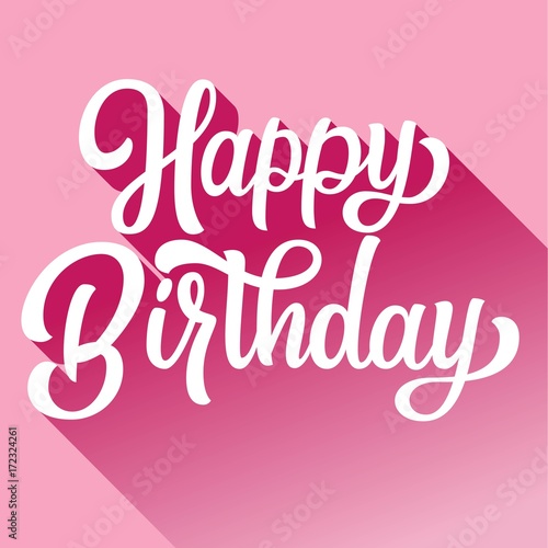 Obraz premium Happy birthday hand lettering with long gradient shadow, on pink background....