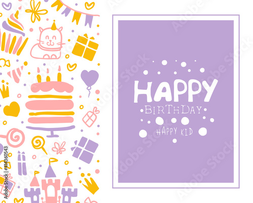 Fototapeta premium Happy Birthday Invitation Card Template, Kids Holiday Party Design Element...
