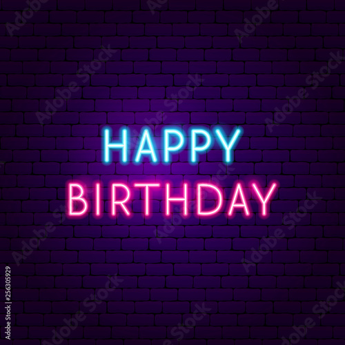 © anna_leni, Fototapeta premium Happy Birthday Neon Sign