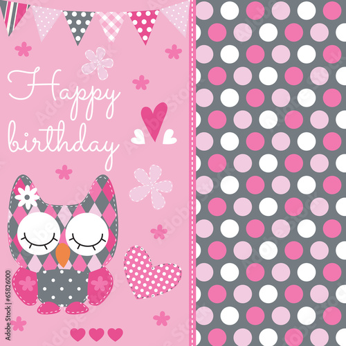 © Larienn, Fototapeta premium Happy birthday owl vector illustration