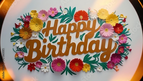 © Ruslan Abdullin, Obraz premium Happy Birthday sign with colorful flowers