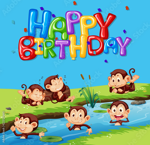 Obraz premium Happy birthday template with monkey