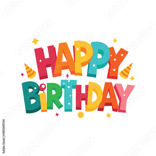 © azad, Fototapeta premium Happy Birthday typography vector illustration. Celebration greeting text, festive calligraphy design, party decoration artwork.