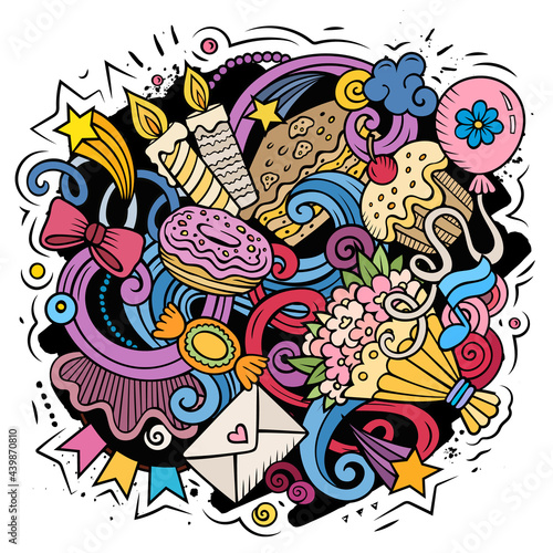 Fototapeta premium Happy Birthday vector doodles illustration.