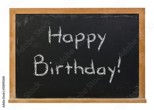 Obraz premium Happy Birthday written in white chalk on a black chalkboard isolated on white