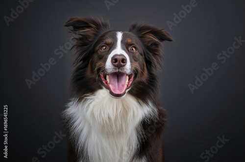 Fototapeta premium Happy Border Collie Close-Up with Training Theme from Elevated Perspective
