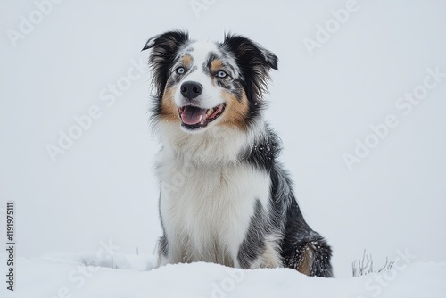 © YUANCEN, Fototapeta premium Happy Border Collie dog sitting on a white background, looking cheerful and playful.