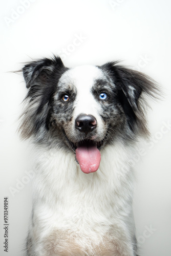 © pupperazzi, Fototapeta premium Happy Border Collie Dog Smiling with Tongue Out Against White Background