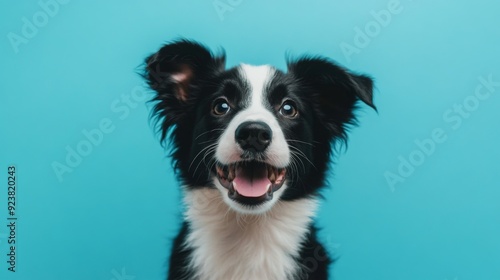 © Maximilian, Fototapeta premium Happy Border Collie on Blue Background
