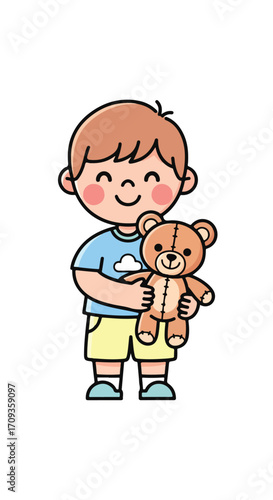 © Seemsalabeem, Fototapeta premium Happy Boy with Teddy Bear Illustration.