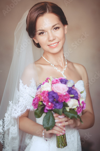 © armina, Naklejka premium Happy bride wedding makeup hairstyle bridal day