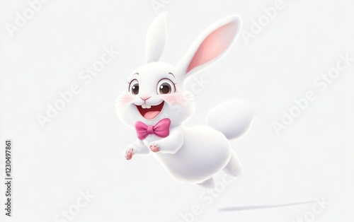 © Zeva, Obraz premium Happy bunny hopping, white background, spring
