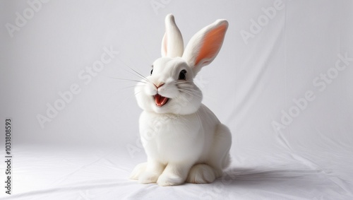 © mamasudhossen, Obraz premium Happy bunny isolated on white background