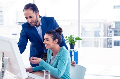 Fototapeta premium Happy businessman and businesswoman working on computer