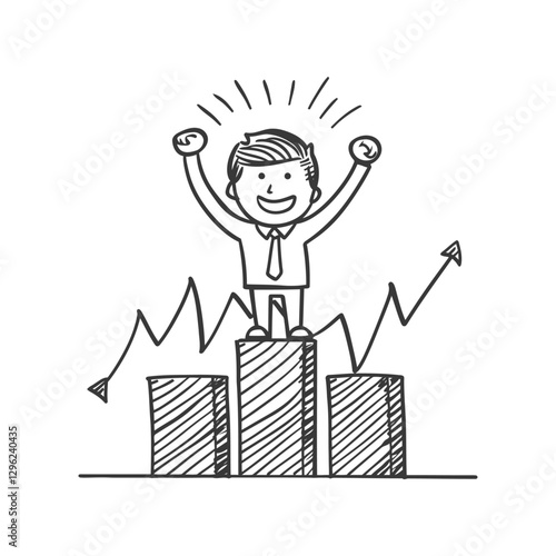 © NikahGeh, Obraz premium Happy Businessman Celebrating Success On A Graph