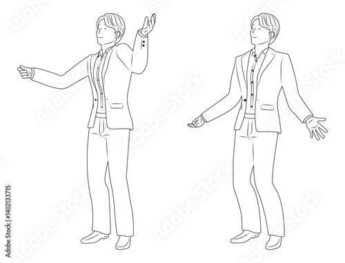 © ST Tarntarn, Fototapeta premium Happy Businessman Character in Joyful and Relaxed Poses, line art style.