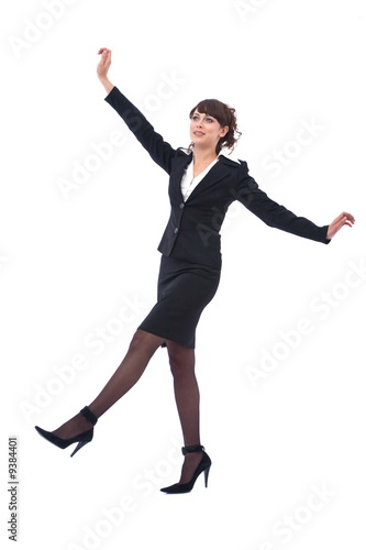 © khz, Fototapeta premium happy businesswoman ready to jump on white