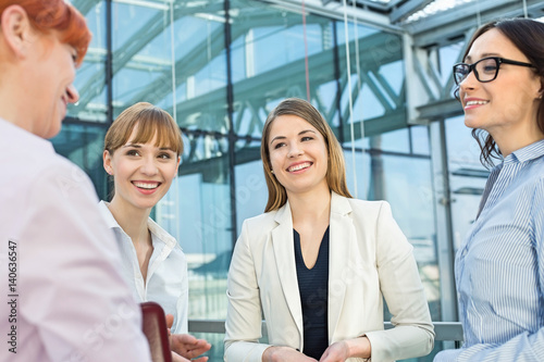Fototapeta premium Happy businesswomen conversing in office