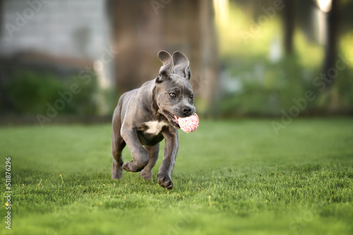 © otsphoto, Fototapeta premium happy cane corso puppy running with a toy in summer