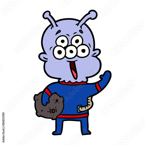 Obraz premium happy cartoon alien with moon rock