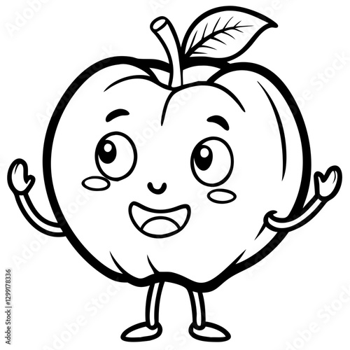 Fototapeta premium Happy Cartoon Apple Character with Arms and Leaf Vector Illustration
