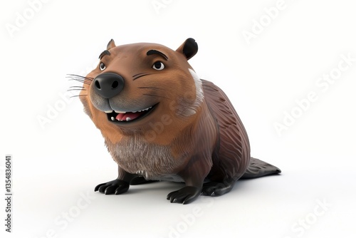 © Ilia, Fototapeta premium Happy cartoon beaver on white background