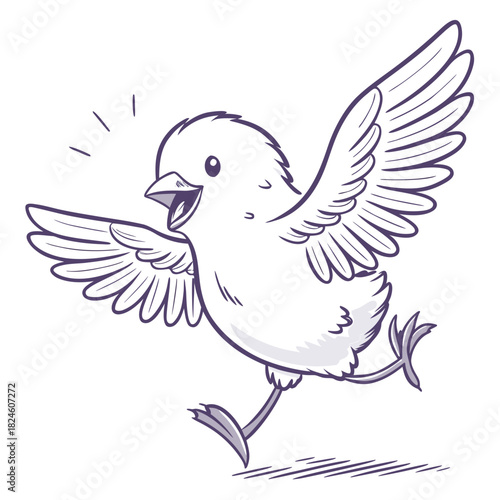 Fototapeta premium Happy Cartoon Bird Running with Wings Spread on White Background chick baby bird