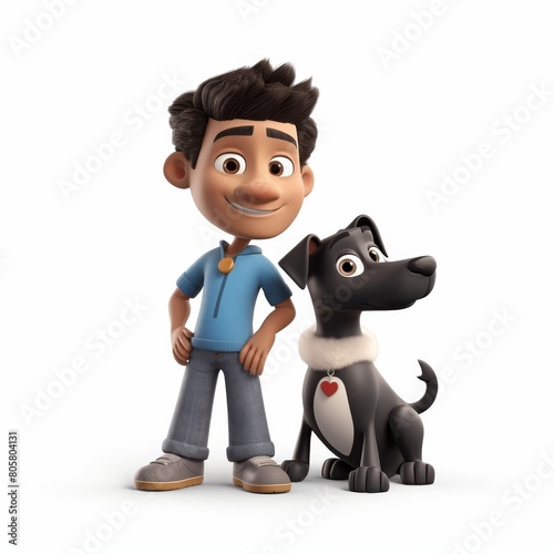Obraz premium Happy Cartoon Boy Standing With His Loyal Dog On White Background