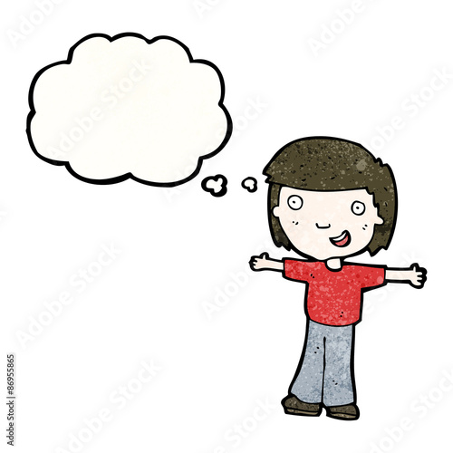 © lineartestpilot, Obraz premium happy cartoon boy with thought bubble
