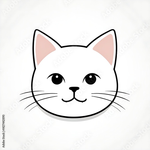 © SVBoseth, Obraz premium Happy Cartoon Cat Design with Soft Whiskers and Gentle Minimal Expression