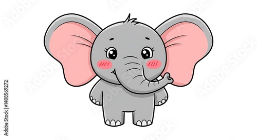 Fototapeta premium Happy cartoon elephant with big floppy ears and blushing cheeks, isolated on...