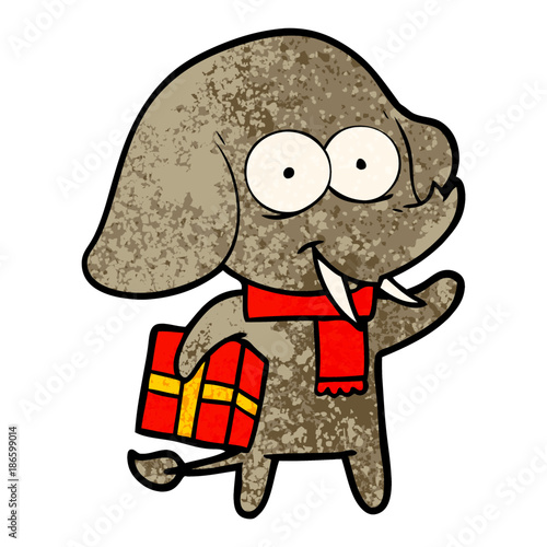 Obraz premium happy cartoon elephant with present